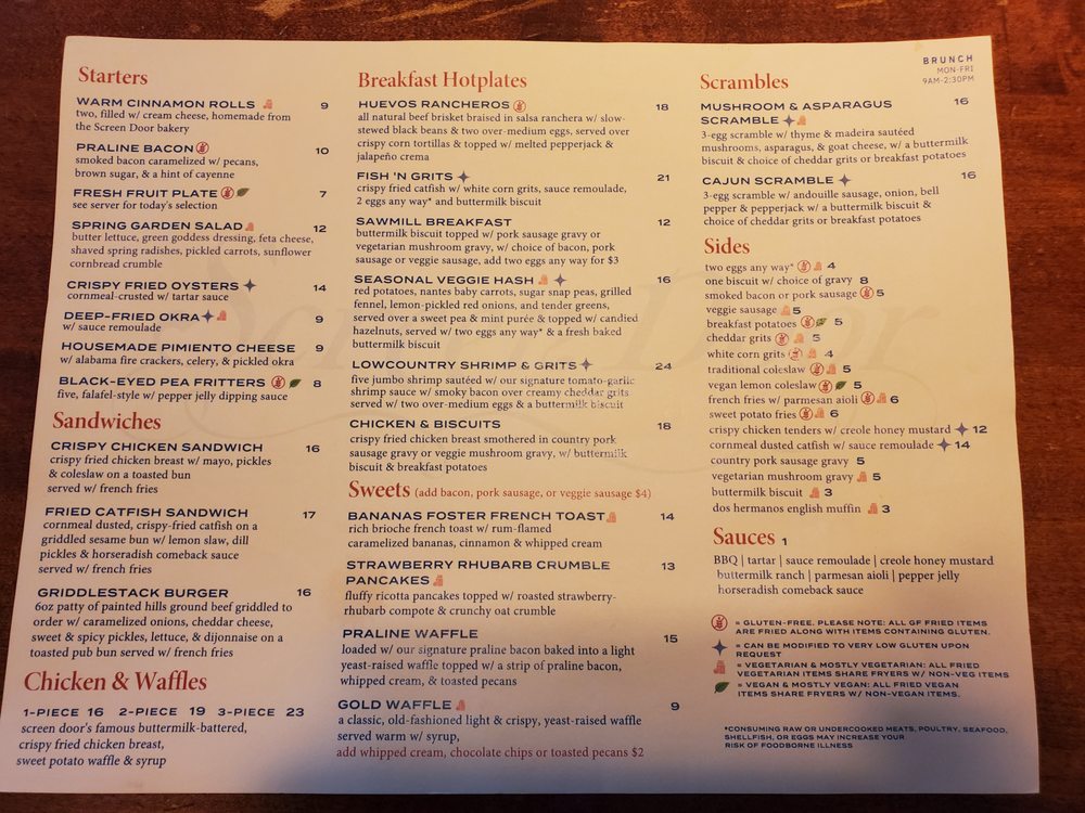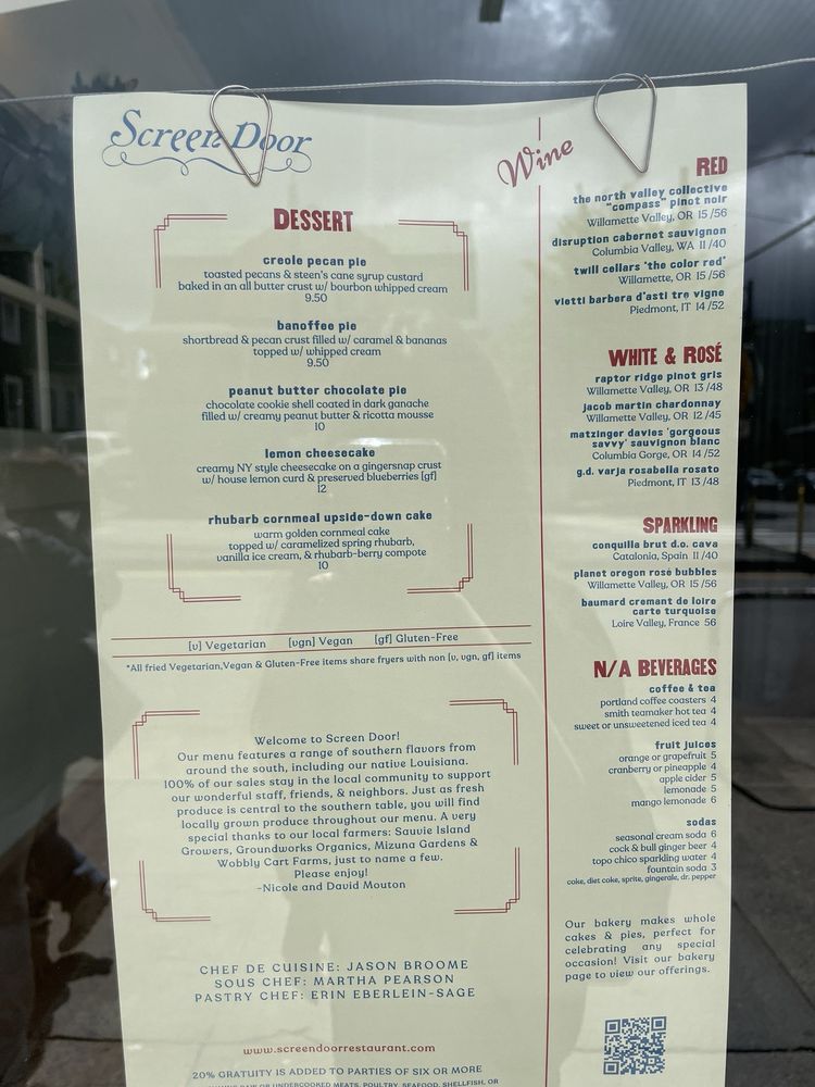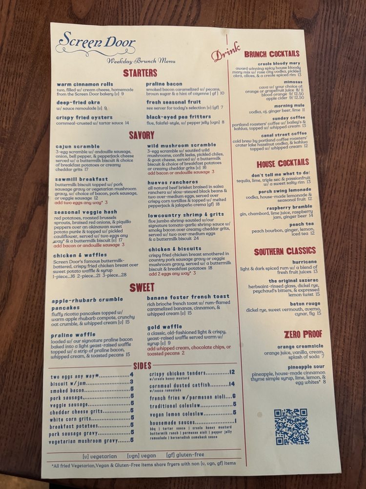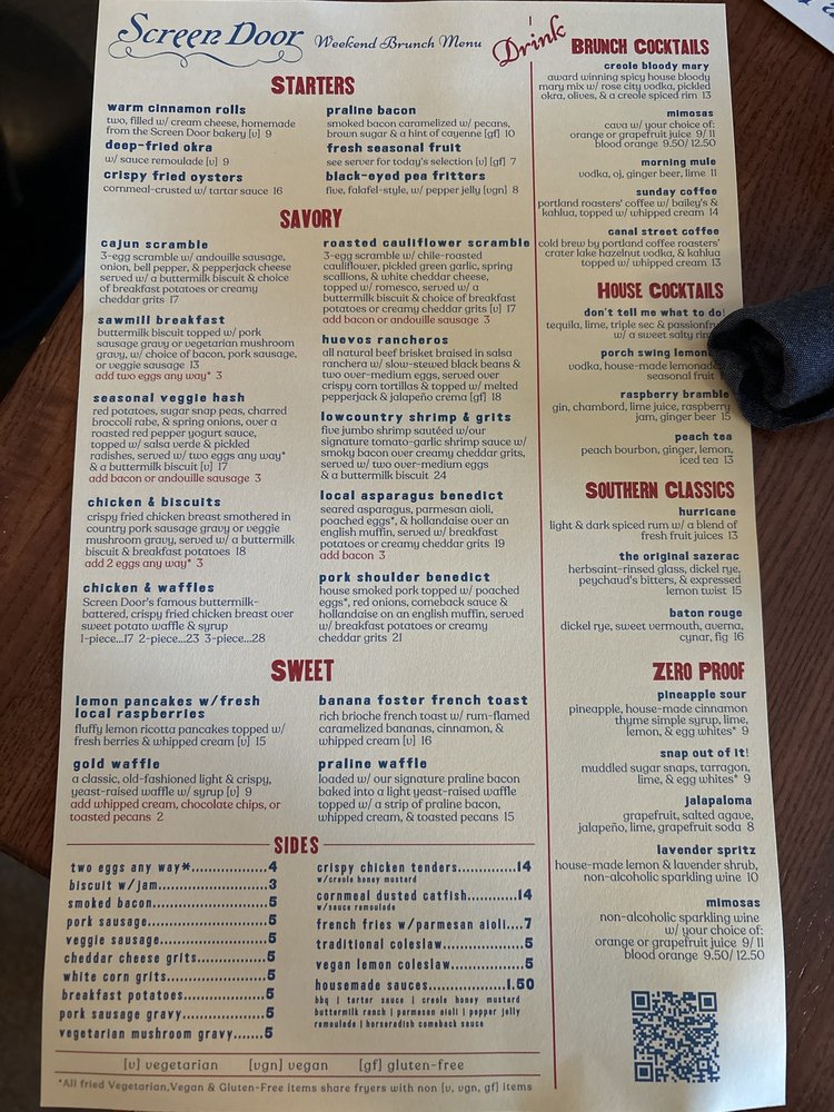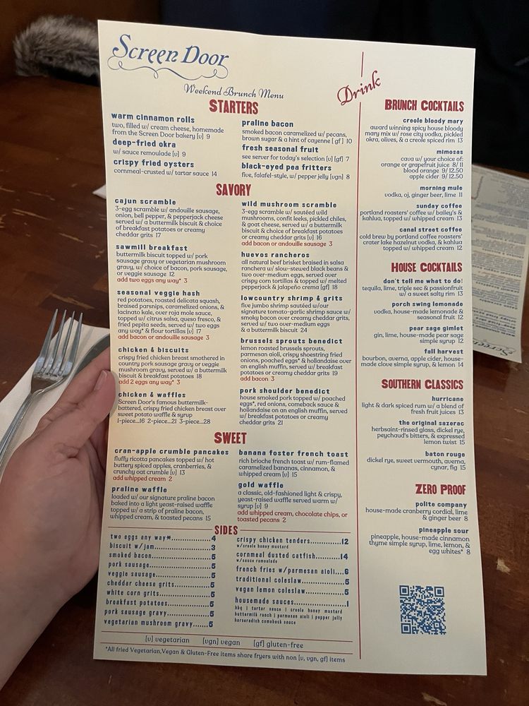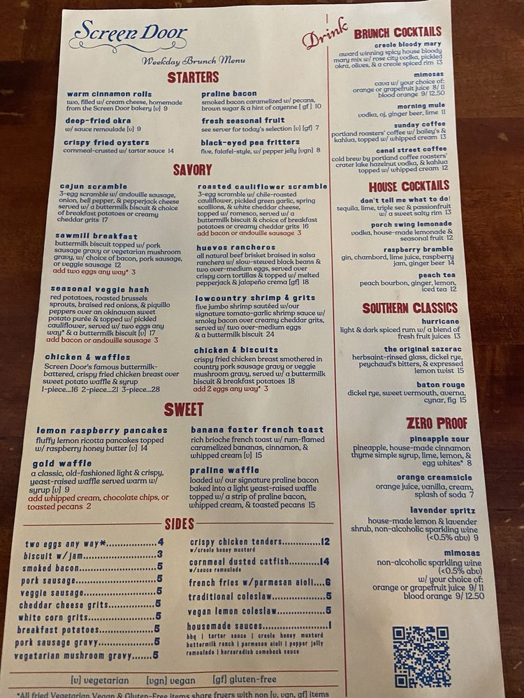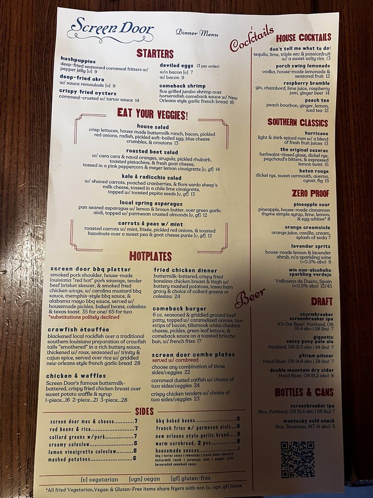 Introducing Screen Door Eastside located in Portland, OR, a beloved brunch spot with a Southern flair. This women-owned restaurant offers a mix of Cajun/Creole and Southern cuisine, with vegan and vegetarian options available. The menu features must-try dishes like crispy fried chicken with biscuits, praline bacon, and cheesy grits. Customers rave about the flavorful food, generous portions, and welcoming atmosphere. The service is outstanding, ensuring a delightful dining experience. Enjoy a delightful meal in a lively setting with both indoor and outdoor dining options. Don't miss their famous chicken and waffles or the delectable banana foster French toast. Street parking is available, and reservations are recommended for this popular spot. Experience the delicious flavors and warm hospitality at Screen Door Eastside.
