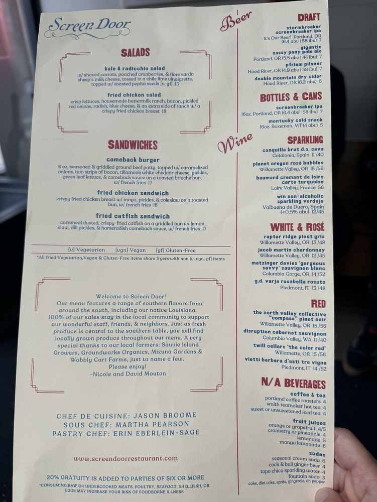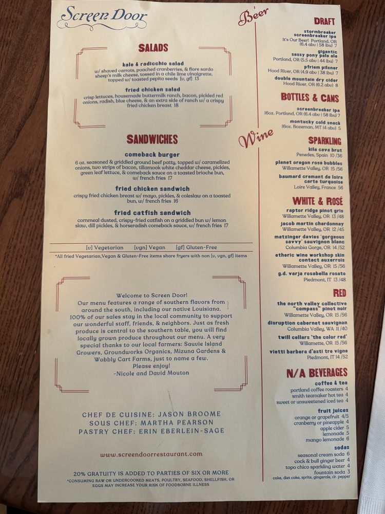 Screen Door Eastside Menu (Update 2025)
